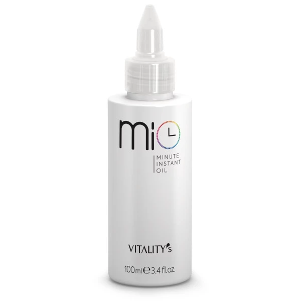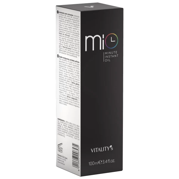 Mio, ajouté au mélange de coloration et activateur, réduit le temps de pose à 15 minutes, assurant la couverture des cheveux blancs et le naturel habituel des couleurs Vitality’s.