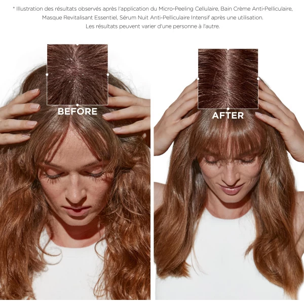 Résultats : L’efficacité anti-pelliculaire est cliniquement prouvée jusqu’à 7 semaines après l’utilisation du produit*. Les cheveux sont 82% plus nourris* et le cuir chevelu 2x plus hydraté** 100% des consommatrices se disent satisfaites de l’efficacité du Bain Crème Anti-Pelliculaire*** Pour une routine complète, pensez à réaliser le Micro-Peeling Cellulaire Symbiose en amont du shampoing, poursuivre avec le Fondant ou le Masque Symbiose, puis terminer avec le Sérum Cellulaire Nuit Anti-Pelliculaire Intensif de la même gamme. *test instrumental : après application du Bain Crème anti-pelliculaire **test clinique *** après 4 semaines d’utilisation. Test consommateur sur 35 personnes.
