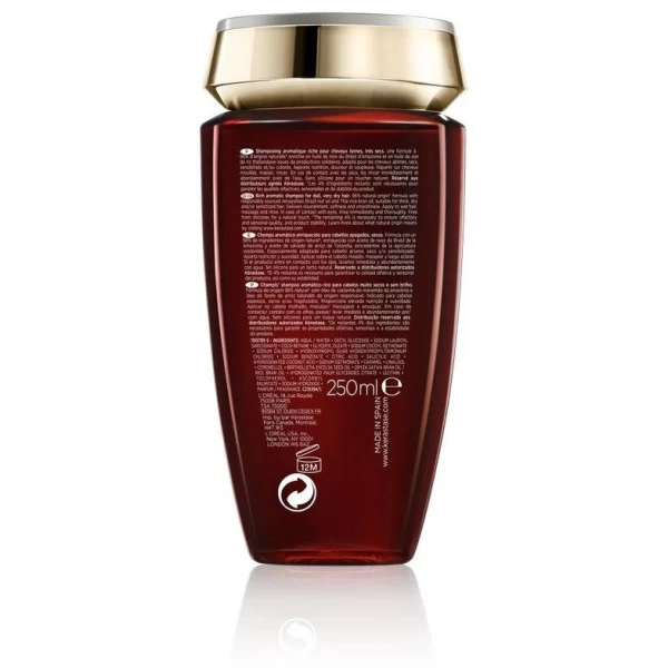 Découvrez le Bain Micellaire Riche de la gamme Aura Botanica de Kérastase, c’est un shampoing conçu pour les cheveux naturels ou légèrement sensibilisés. Ce shampoing micellaire riche nourrit durablement vos cheveux et leur apporte brillance et nutrition. Ce soin aromatique Rich avec 96% d’ingrédients d’origine naturelle à l’huile de noix du Brésil d’Amazonie et l’huile de riz Thaïlandais qui se transforme en une mousse légère nettoyant les impuretés. Il est recommandé de l’utiliser avec le soin fondamental de la même gamme en complément. Le Bain micellaire Aura Botanica Riche apporte 48 heures de nutrition profonde et durable grâce au duo avec le soin fondamental.