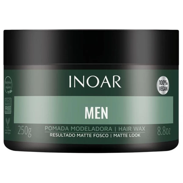 Application : Appliquez une petite quantité de Pommade Men Inoar du bout des doigts sur cheveux secs ou humides, coiffez comme vous le souhaitez. Pour de meilleures performances, utilisez les autres produits de la gamme.