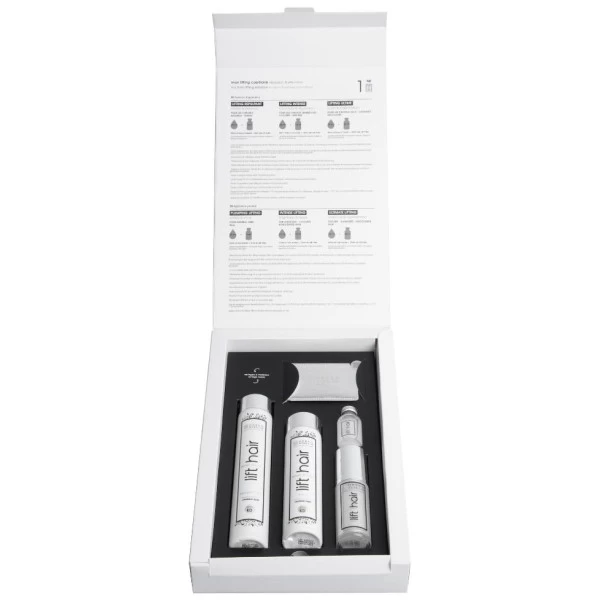 - Ce coffret contient une fiole Lift Hair 10 ml, 1 Shampoing effet miroir 250 ml, 1 conditionneur effet miroir 250 ml et une huile miroir 30 ml.