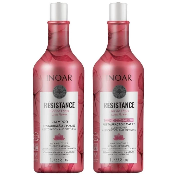 Duo lotus Resistance Inoar, pour les cheveux affaiblis ayant besoin d’une revitalisation intense.