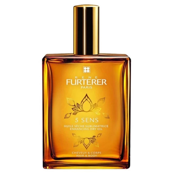 Huile sèche sublimatrice 5 Sens René Furterer, pour un usage fréquent toute l’année sur tous les types de peaux. Formulée avec 100% d’actifs d’origine naturelle, elle apporte hydratation, douceur et brillance.