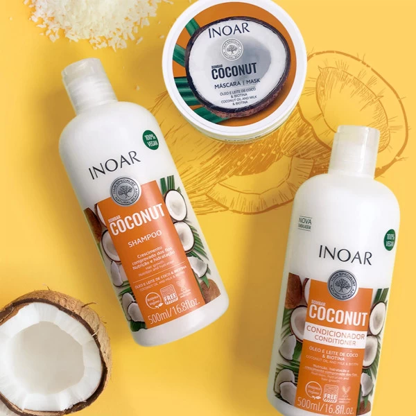 Duo shampooing & conditionneur Bombar Coconut Inoar, pour les cheveux normaux Ă secs.