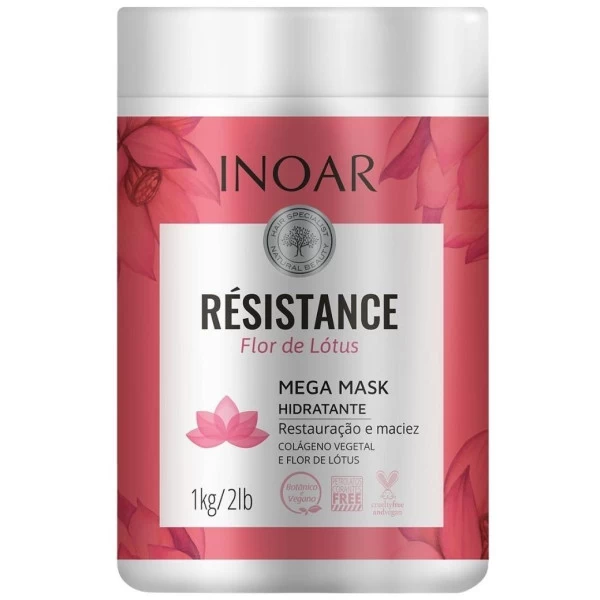 Masque lotus Resistance Inoar, pour les cheveux affaiblis ayant besoin d’une revitalisation intense.