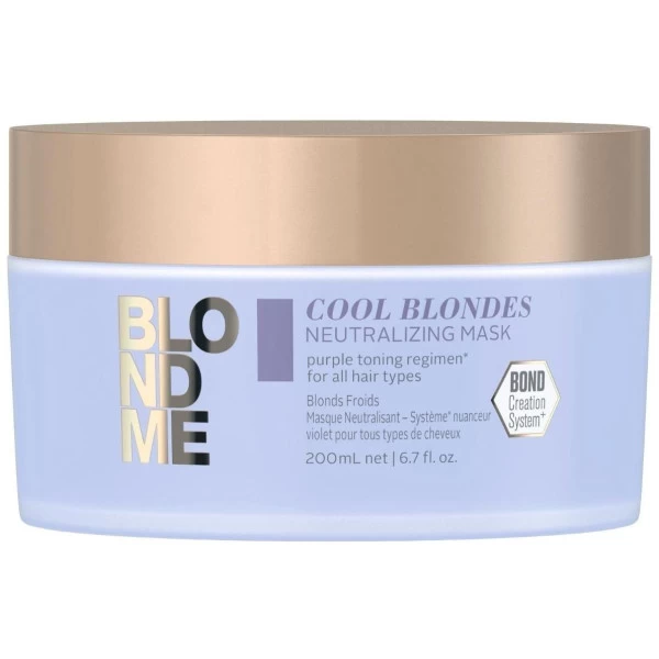 Masque neutralisant BlondMe Schwarzkopf Professional, pour tous les types de cheveux blonds souhaitant un résultat froid.