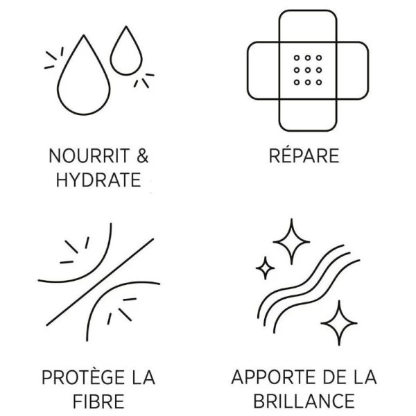 Application : Appliquez le masque sur cheveux propres et humides, en insistant sur les longueurs et les pointes. Laissez agir pendant 5 à 10 minutes, puis rincez abondamment. Utilisez une à deux fois par semaine pour des résultats optimaux.