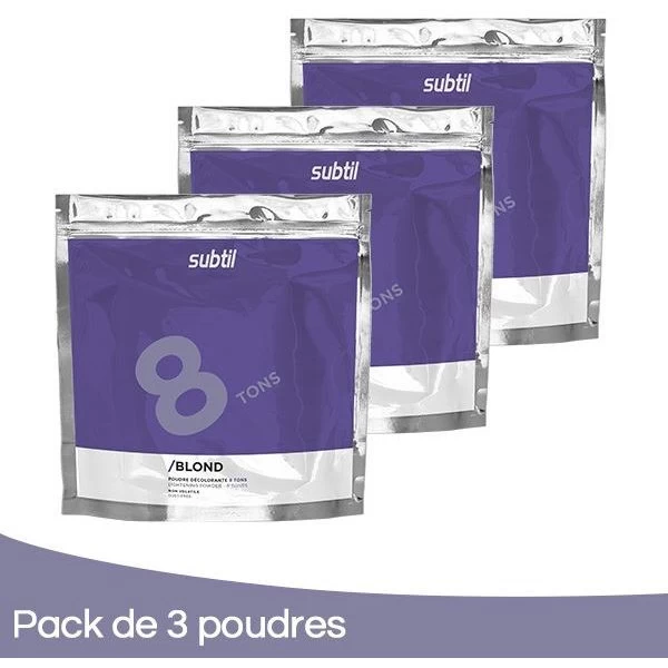 Pack de 3 Subtil Blond poudre décolorante 500 Grs qui éclaircit jusqu’à 8 Tons