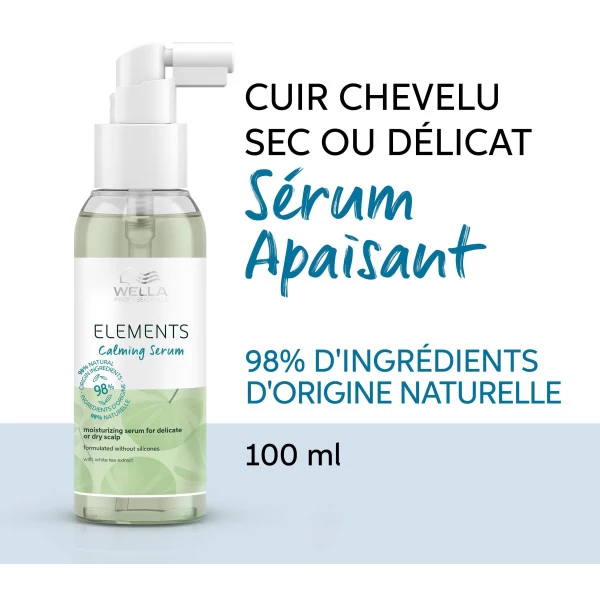 Sérum Calming Elements de Wella Care, formulé à 98% d’ingrédients d’origine naturelle.