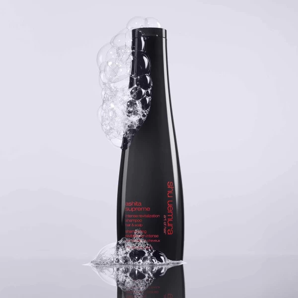 Application : Appliquez le shampooing sur cheveux humides, émulsionnez et rincez. Complétez ensuite avec le conditionneur ou le masque Ashita Suprême.