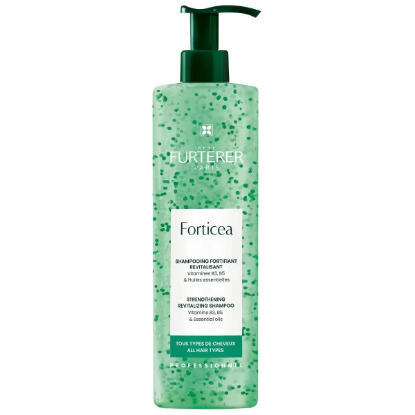 Shampooing énergisant Forticea René Furterer, formulé à 97% d’ingrédients d’origine naturelle, pour tonifier le cuir chevelu et les cheveux au quotidien.