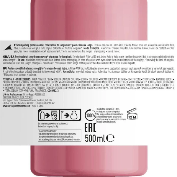 Le shampooing rénovateur de longueurs Pro longer Série Expert est idéal pour entretenir les cheveux longs sans avoir à les couper ! Sa formule professionnelle, enrichie en Filler-A100 et acide aminé, permet une rénovation instantanée de la fibre.
