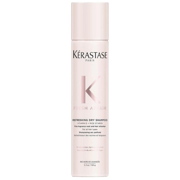 Shampooing sec parfumé Fresh Affair Kérastase; rafraichit tous les types de cuirs chevelus et de cheveux. Les actifs contenus dans sa formule permettent de mêler efficacité et sensorialité.