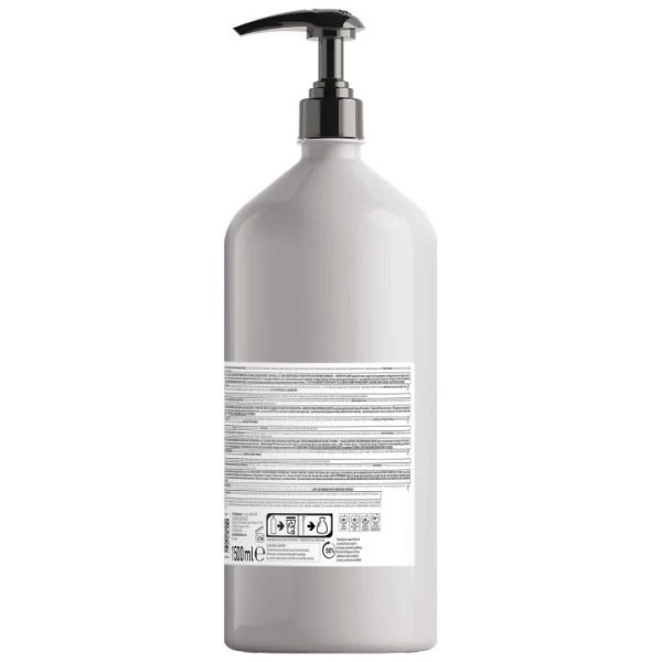 Shampooing Silver L’Oréal Professionnel, l’alliance incroyable de pigments violets et de magnésium acétate pour neutraliser les reflets jaunes des cheveux gris.