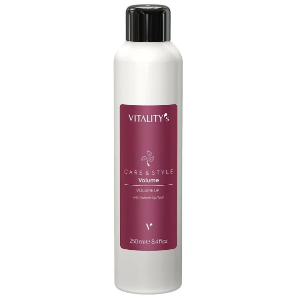 Le spray de finition Volume Up Care & Style de Vitality’s apporte la touche finale au brushing et accroître le volume de la coiffure. Sa vaporisation ultrafine permet d’apporter la dernière touche au coiffage en laissant les cheveux libres de leurs mouvements. Sa formule spéciale sèche crée un voile et ne laisse pas les cheveux humides. À la maison, c’est le meilleur allié de la cliente : sa formule sèche permet de prolonger le brushing du coiffeur. Volume Up est le rituel quotidien pour retrouver le volume souhaité chaque matin.